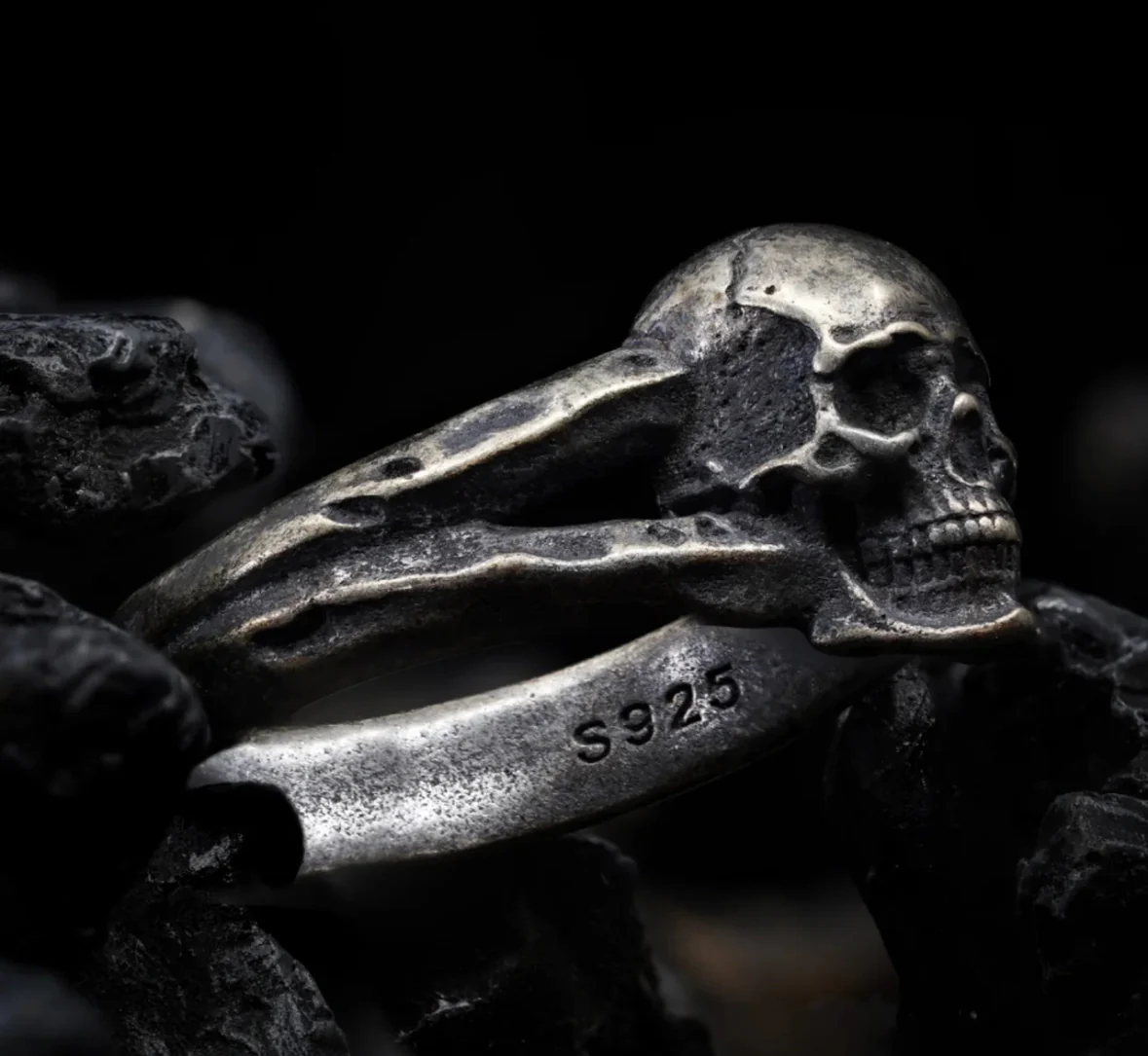 This Sterling Silver Skull Ring is part of our ever expanding collection of macabre. Featuring a texture that wraps the entire band. Made of 925 Sterling Silver, every ring is handmade by Black Feather Designs.