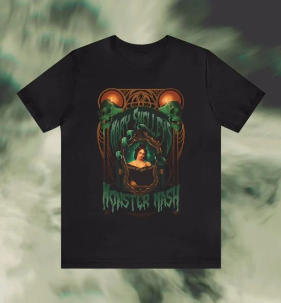 Designed by Natalie Linaweaver, the Mary Shelley band tee is part of Wonder Witch Monster Mash collection which celebrates all things literary monsters, gothic horror, and dark/spooky tales.