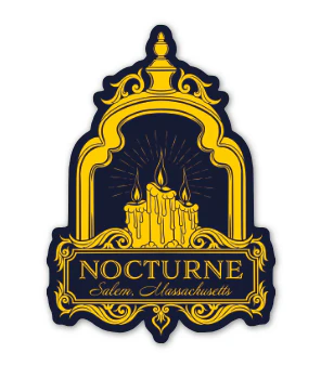 This sticker is holographic vinyl blue and gold, designed by the wonderful and talented Dana Glover (@danagloverart on IG). It is 3 inches tall and 2 inches wide at the bottom.
